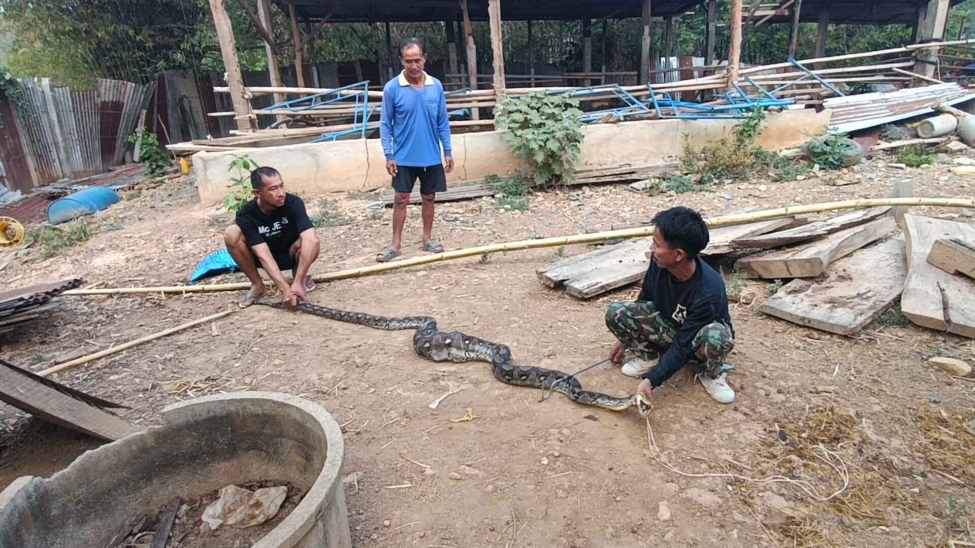 เหลือมใหญ่พุงกางเขมือบไก่ชนพ่อพันธุ์ เจ้าของเศร้า2หมื่นกว่าหายไปในท้องงู