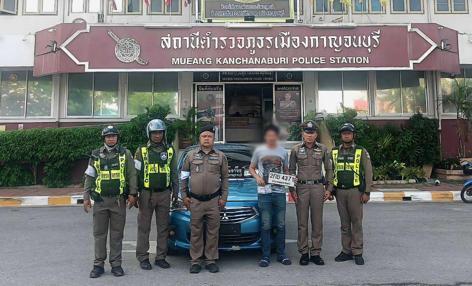 หนุ่มบ่อพลอยขับเก๋งติดป้ายเก๊เข้าด่าน ถูกตร.เมืองกาญจน์จับอ้างใช้มานาน5ปี