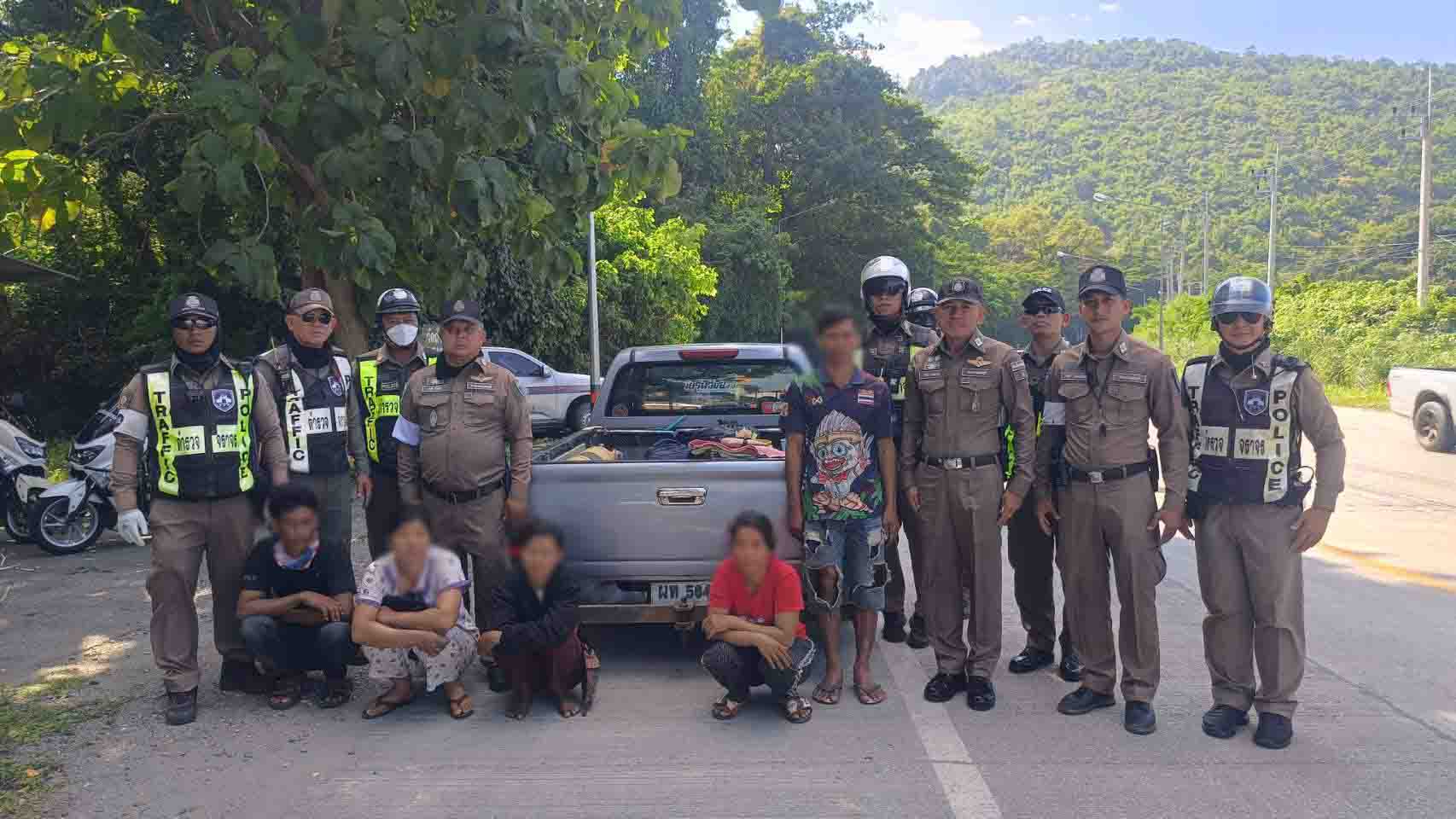 กาญจนบุรี – เจ้าหน้าที่ตั้งด่านสกัดเข้ม สุดท้ายจับได้คาด่าน! กระบะอีซูซุขนแรงงานต่างด้าว 4 ราย อ้างไม่รู้ว่าไม่มีเ...