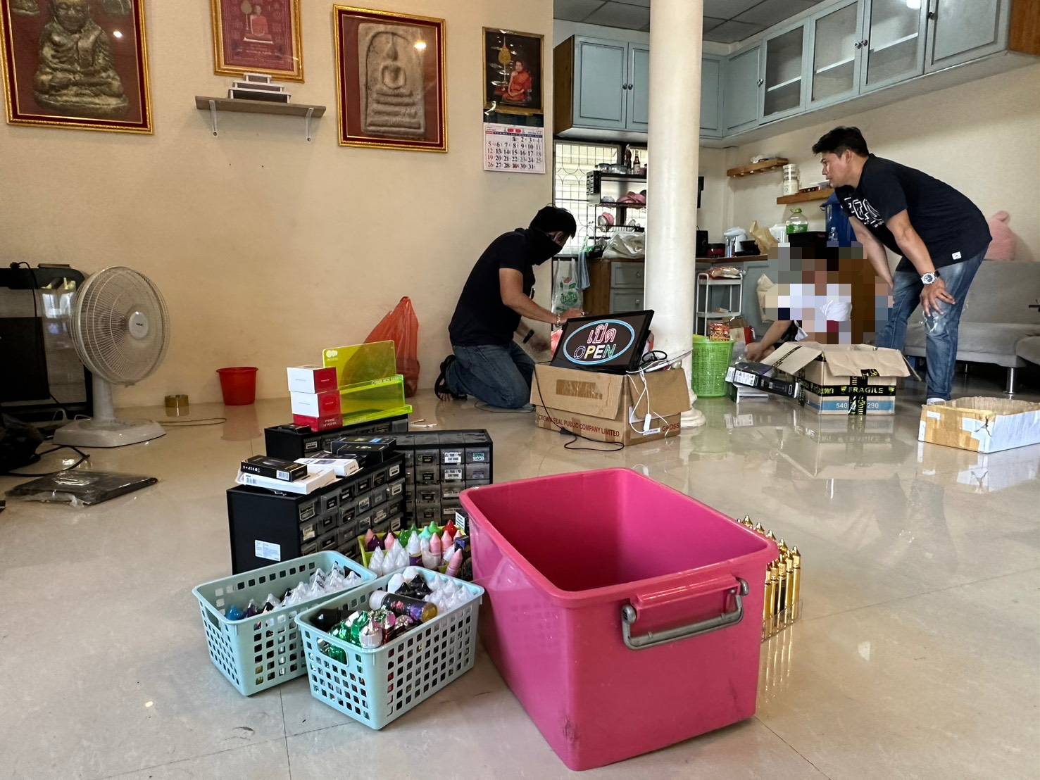 รองผบ.ตร.แถลงผลการจับผู้ต้องหา2ราย ซุกซ่อนบุหรี่ไฟฟ้า3.5หมื่นชิ้นในบ้านพัก