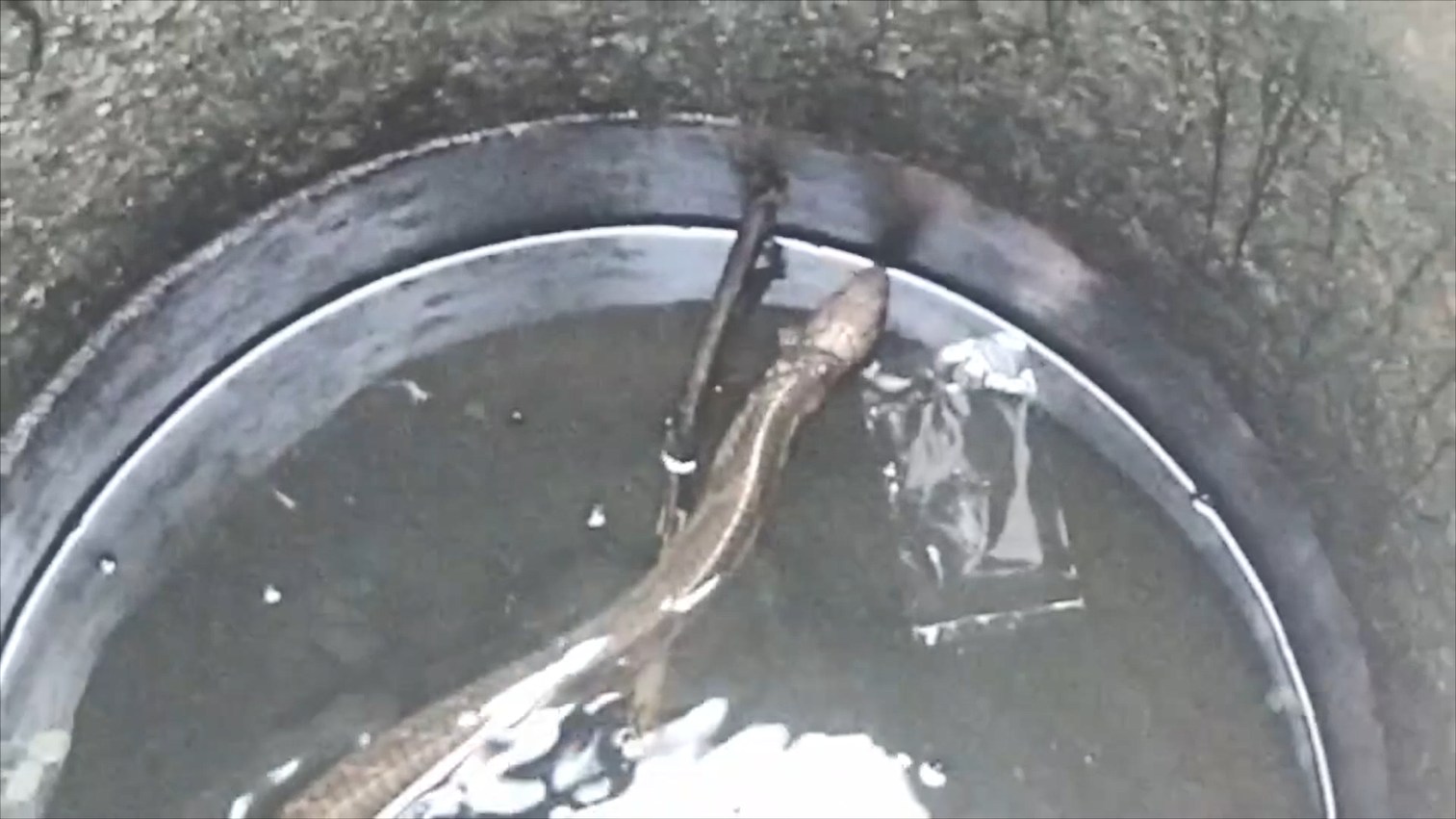 'จงอาง'หนีอากาศร้อนพึ่งบ่อน้ำชาวบ้าน ผลขึ้นไม่ได้ทีมอสรพิษฯต้องมาช่วยจับ