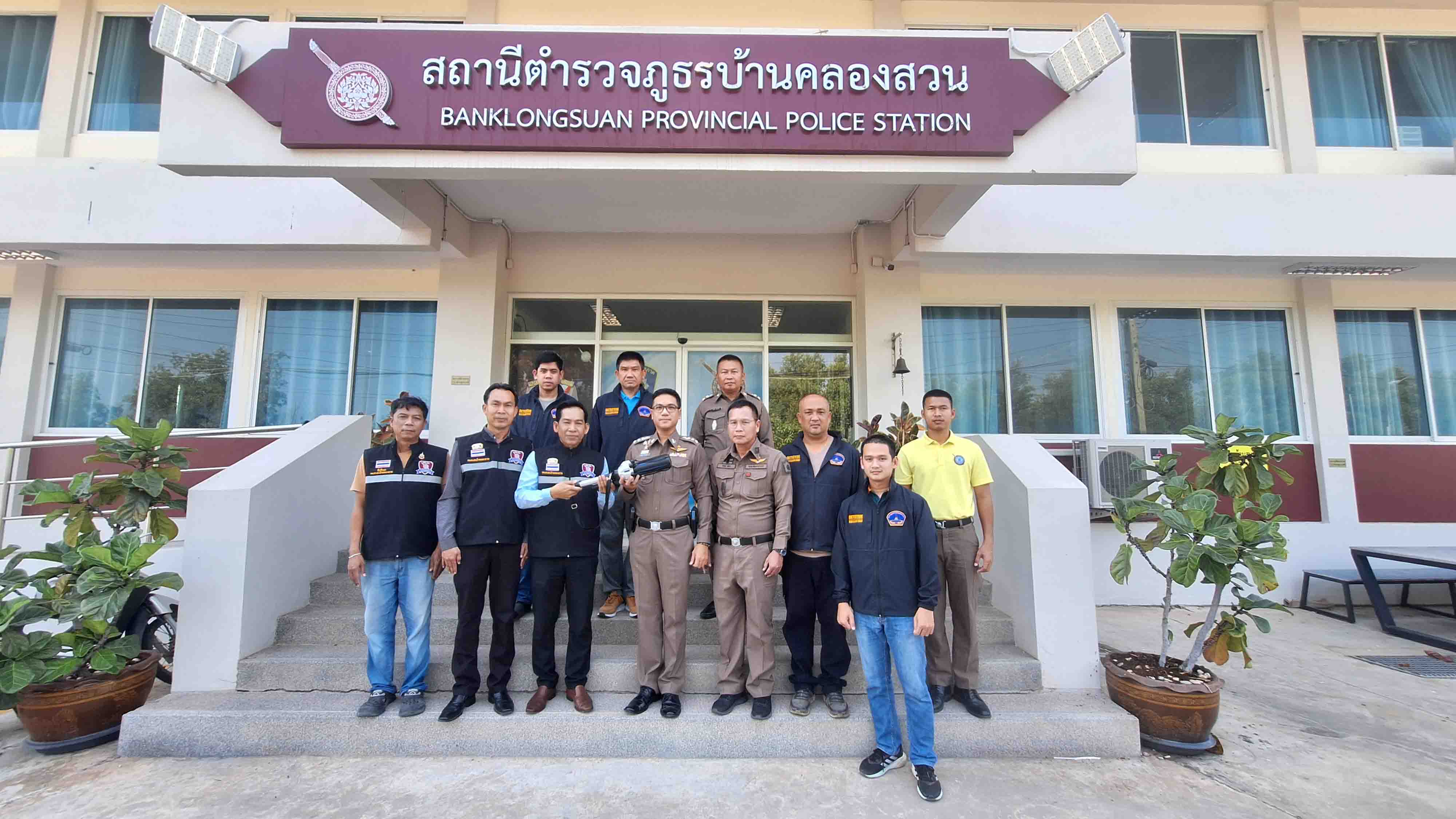 สภ.บ้านคลองสวนรับมอบปืนยิงแหเสริม สมรรถภาพในการจับผู้ก่ออาชญากรรม