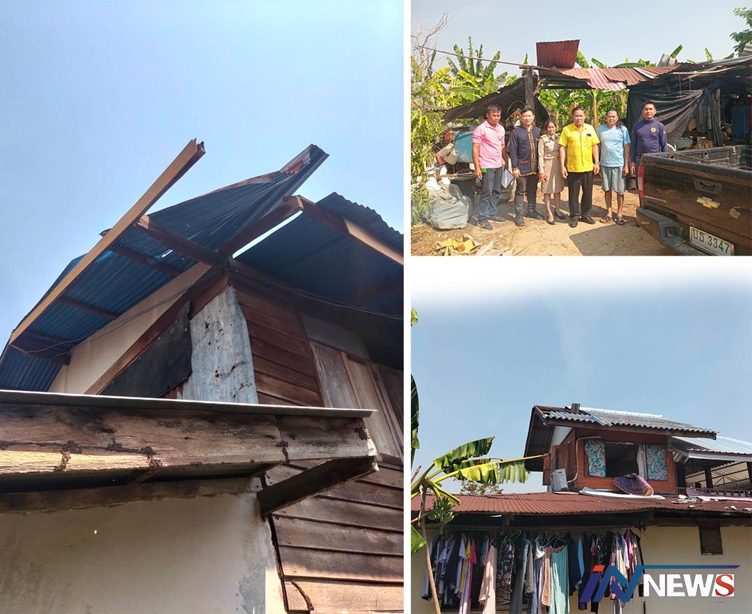 ทต.โพนทองสั่งเร่งสำรวจความเสียหาย พายุฤดูร้อนถล่มยับ3หมู่บ้าน