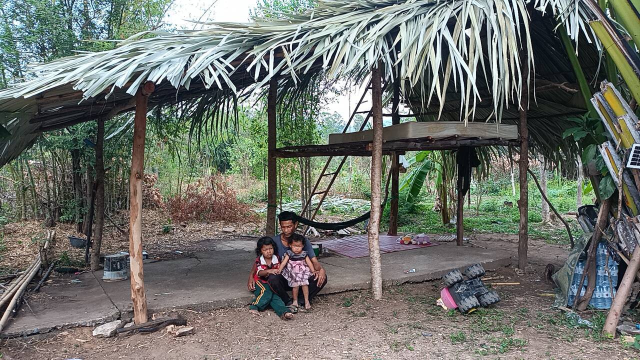 หนุ่มนาดีวัย43พ่อเลี้ยงเดี่ยวปลูกกระท่อม ใบลานเลี้ยงลูกสาว2คน