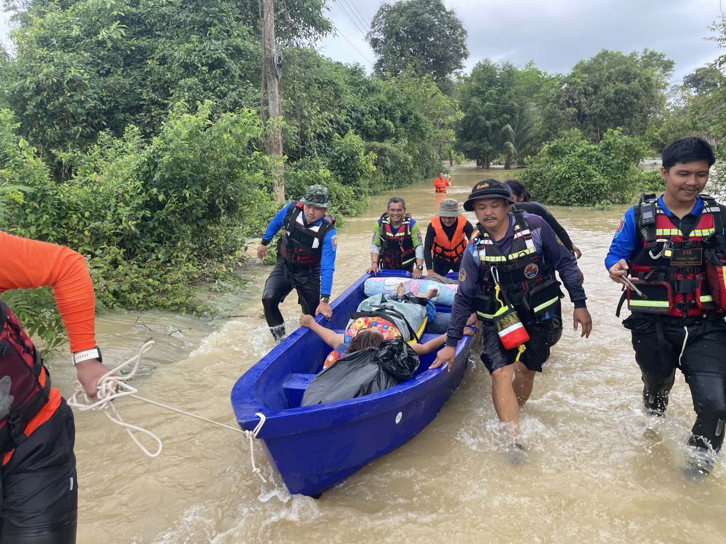 กู้ภัยพัทลุงจับมือหน่วยป้องกันฯของอบจ. ช่วยย้ายผู้ป่วยติดเตียงจากน้ำท่วมหนัก