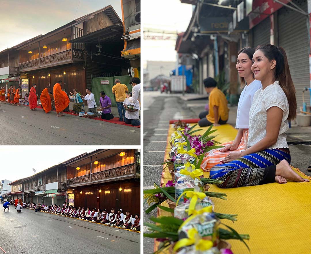 บรรยากาศรับหนาวคนไทหล่มเพชรบูรณ์ แต่งชุดสวยนั่งทำบุญตักบาตรยามเช้า