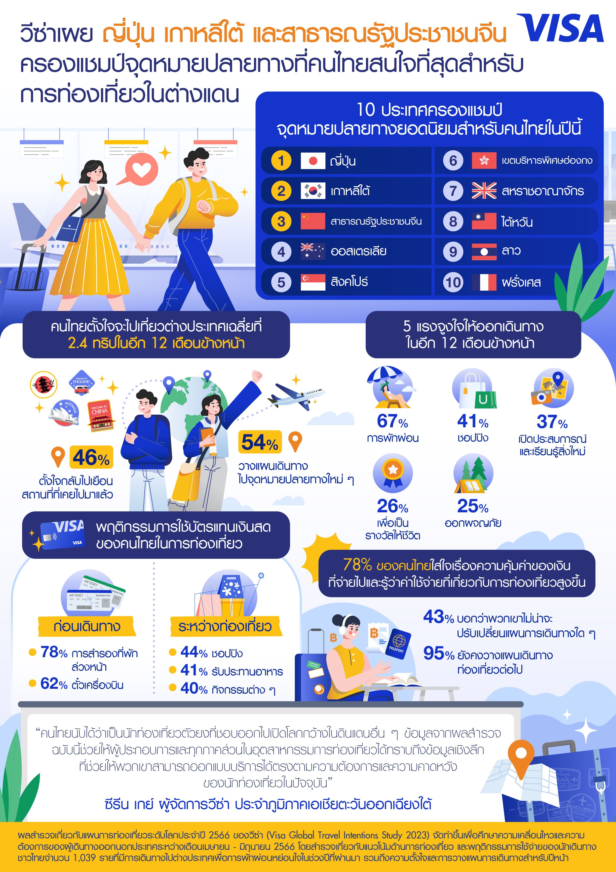 วีซ่าเผยญี่ปุ่นเกาหลีใต้และจีนครองแชมป์ จุดหมายปลายทางคนไทยสนใจที่สุด