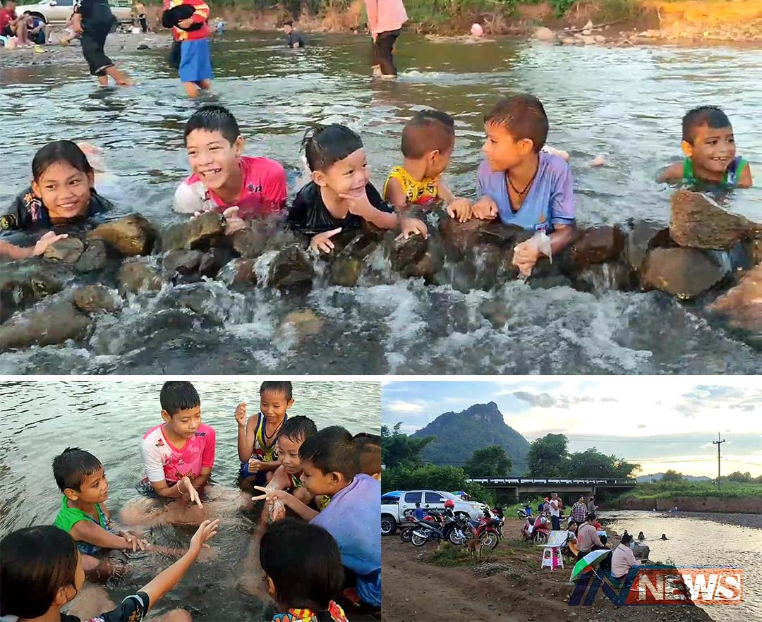 ชาววังโป่งเล่นน้ำสะพานสองคลองน้ำคัน สุดคึกคักแม่คาลูกชิ้นปลื้มขายหมดทุกวัน