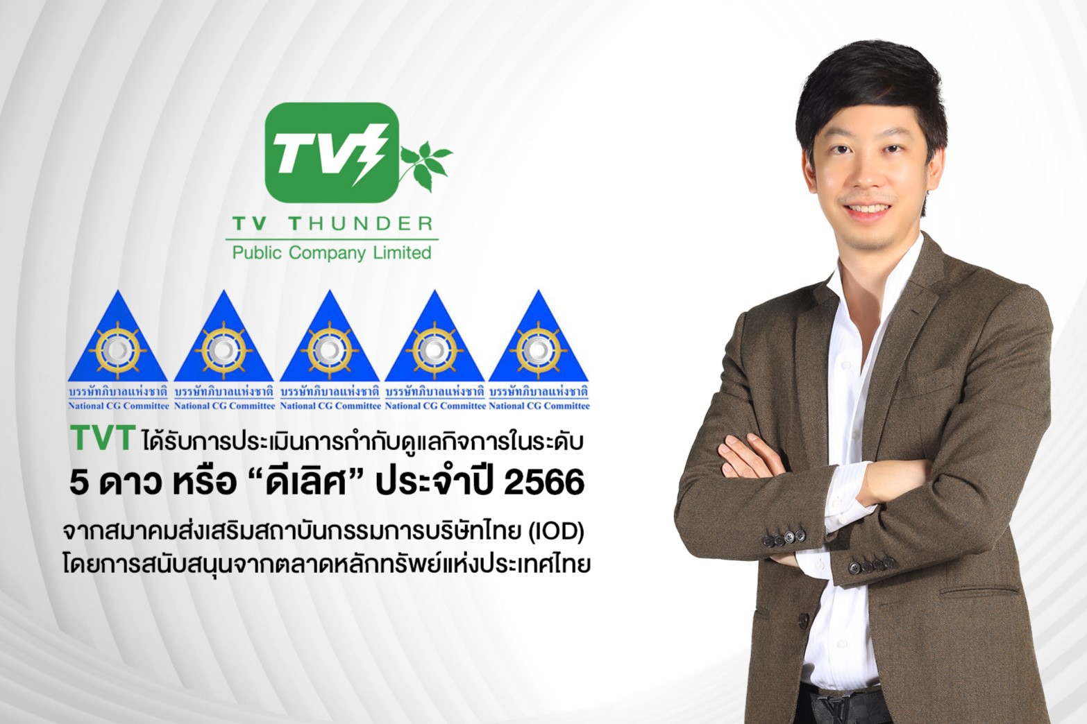 กรุงเทพฯ-บริษัท ทีวี ธันเดอร์ จำกัด (มหาชน)ได้รับคะแนนการประเมินการกำกับดูแลกิจการในระดับ 5 ดาว หรือ ดีเลิศ (Excellent C...