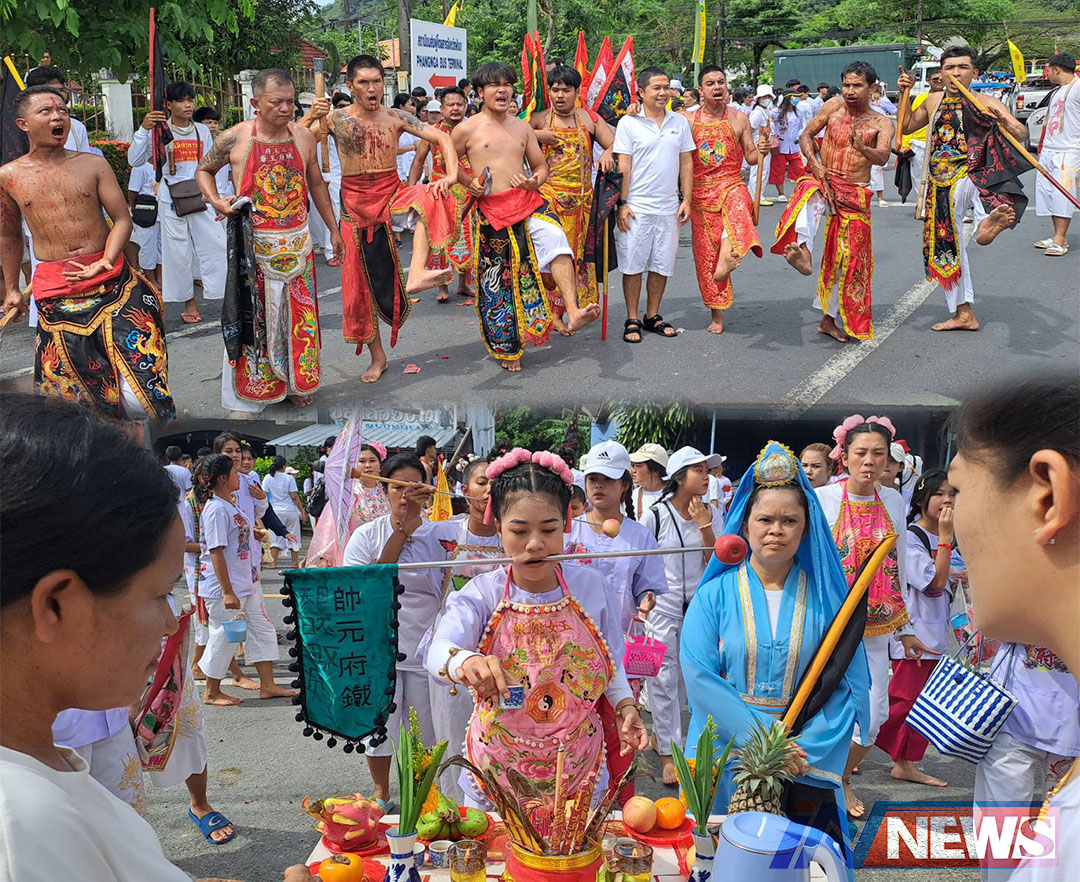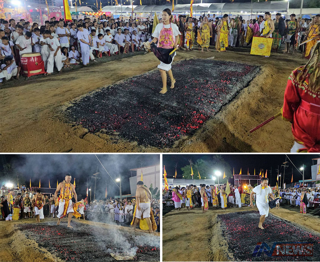 ม้าทรง-ลูกศิษย์ศาลเจ้าจ่งต๋านหง่วนโส่ย เดินเท้าเปล่าลุยกองไฟในงานกินเจพังงา