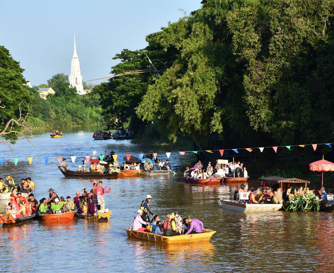 ชาวไทยรามัญสืบสานประเพณีลอยผ้าป่า เรือโบราญ100ลำทอดวัดริมน้ำลพบุรี