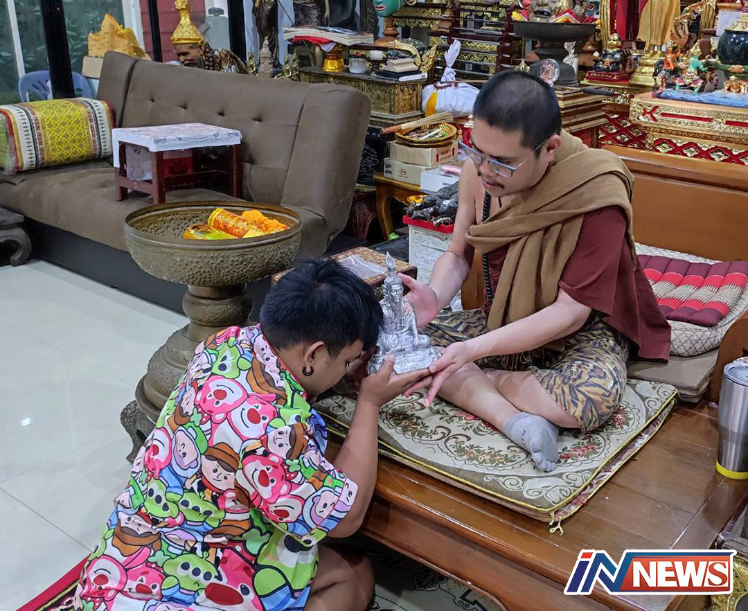 ปทุมธานี-ที่อาศรมฤาษีเณร ธาตุพุทธคุณ ตลกดัง แป้งฝุ่นกราบขอพร ส่องอ่างน้ำมนต์อาศรมฤาษีเณร