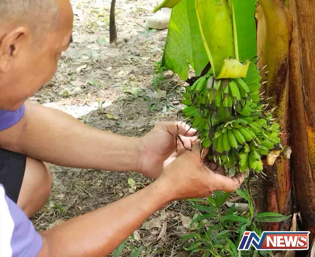 นครนายก-หนุ่มกู้ภัยสว่างอริยะนครนายกปลูกกล้วยไว้หลายชนิดเกิดพายุฝนลมแรงพัดต้นกล้วยไข่หักเจ้าของได้ตัดทิ้งเหลือแต่ตอโผล่เ...