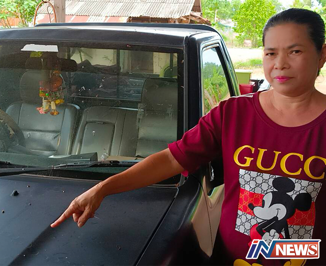 ปราจีนบุรี-แม่ค้าขายข้าวเหนียวหมูปิ้งพบรอยปริศนาเลื้อยบนฝากระโปรงรถและหลังคารถกระบะ เชื่อมาให้โชค