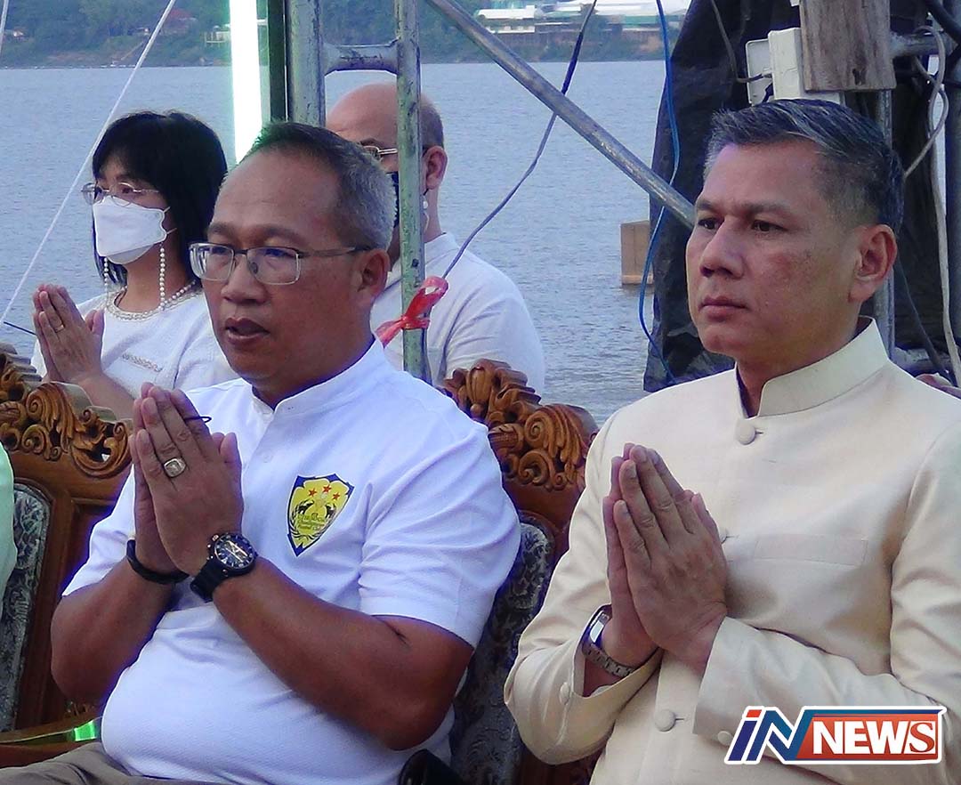ประชาชนแห่ร่วมพิธีบวงสรวงองค์ปู่อนันตนาคราชริมฝั่งแม่น้ำโขง