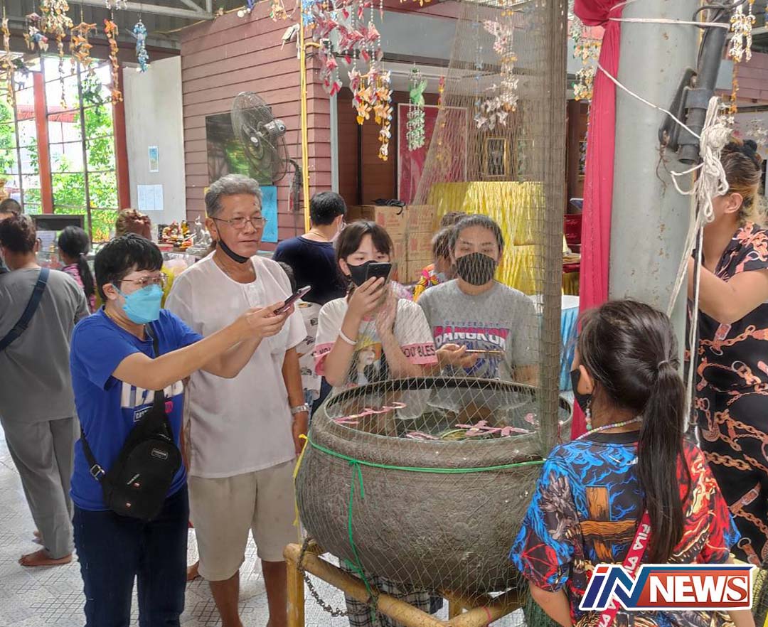 นทท.แห่เข้ากราบไหว้หลวงพ่อปากแดง ขอโชคลาภส่องหาเลขเด็ดใกล้หวยออก