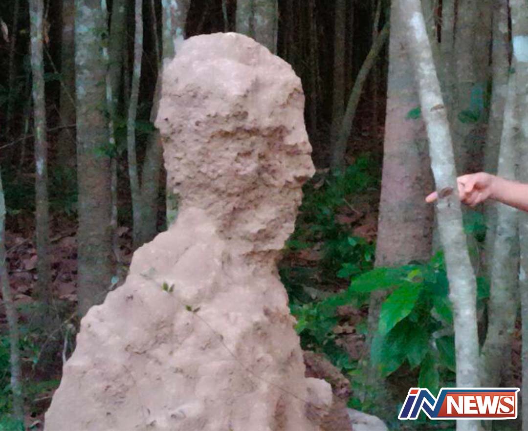 ปราจีนบุรี-พบจอมปลวกเหมือนหน้าคน ภายในบริเวณสวนป่ายางนาหลังบ้าน
