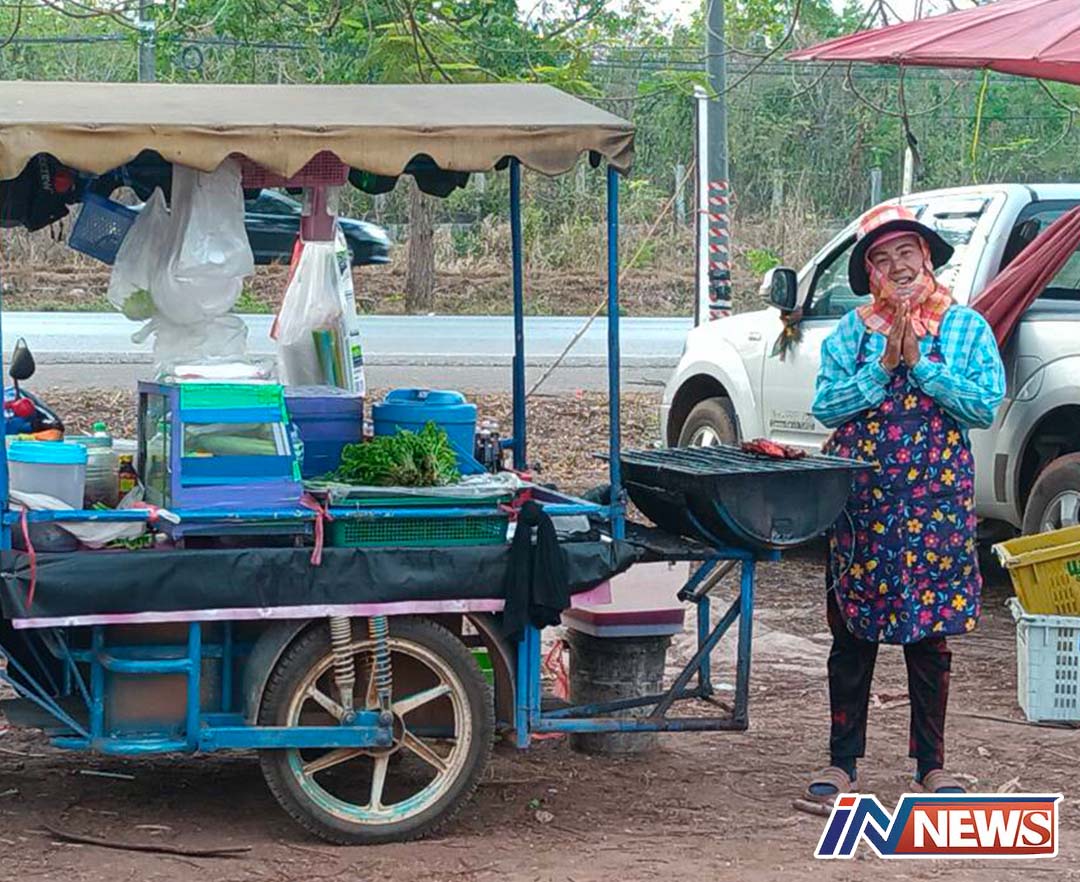 ปราจีนบุรี-หากินด้วยลำแข้ง รถ จจย.พ่วงข้างข้าวเหนียวไก่ย่างส้มตำพร้อมร้องเพลงจินตหราจากป้าวัย 61 ปี อดีตสาวหางเครื่องวงจ...