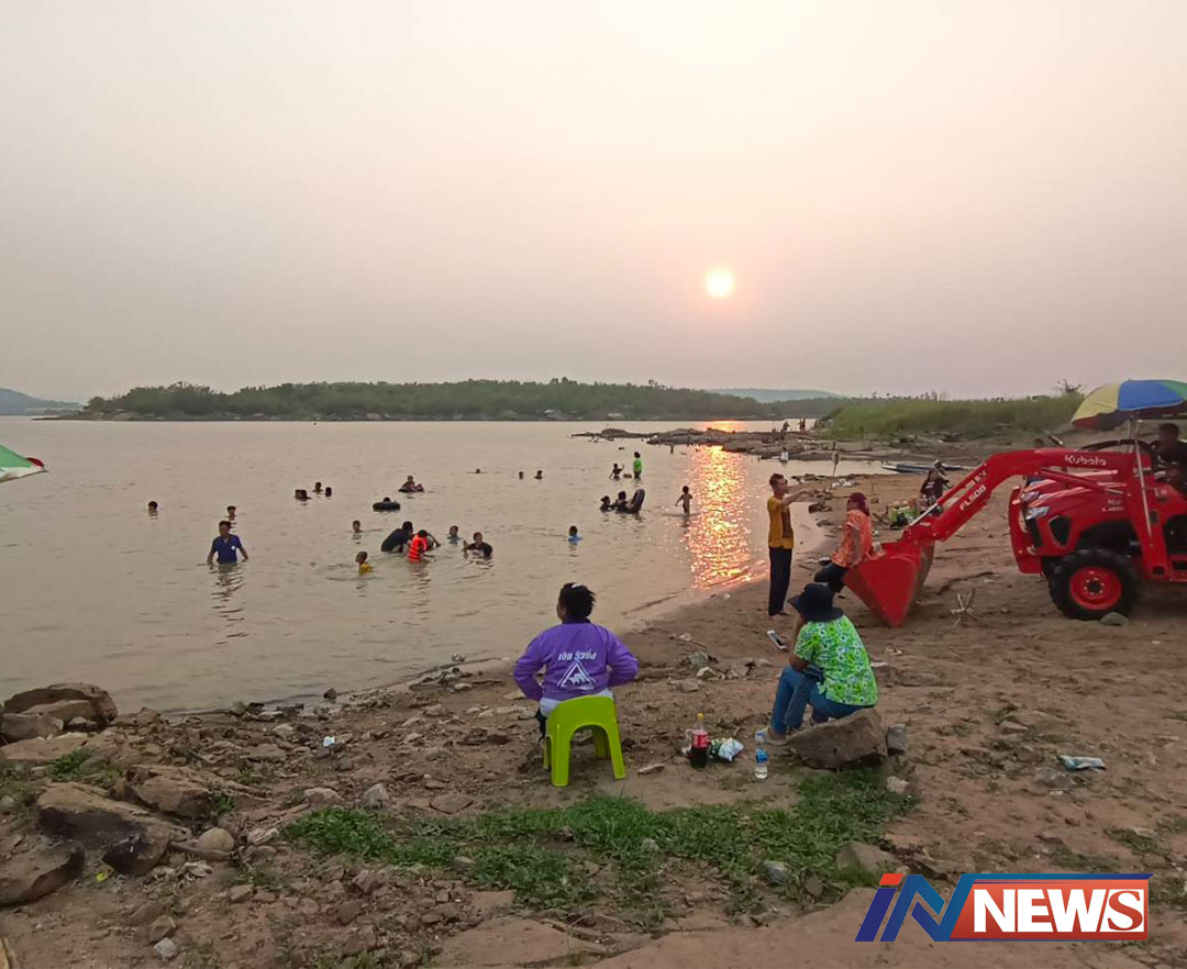 ชัยภูมิ-บรรยากาศเล่นน้ำคลายร้อนและชมพระอาทิตย์ลับขอบฟ้าที่เขื่อนโป่งขุนเพชรคึกคักที่เขื่อนโป่งขุนเพชร ต.โคกสะอาด อ.หนองบ...