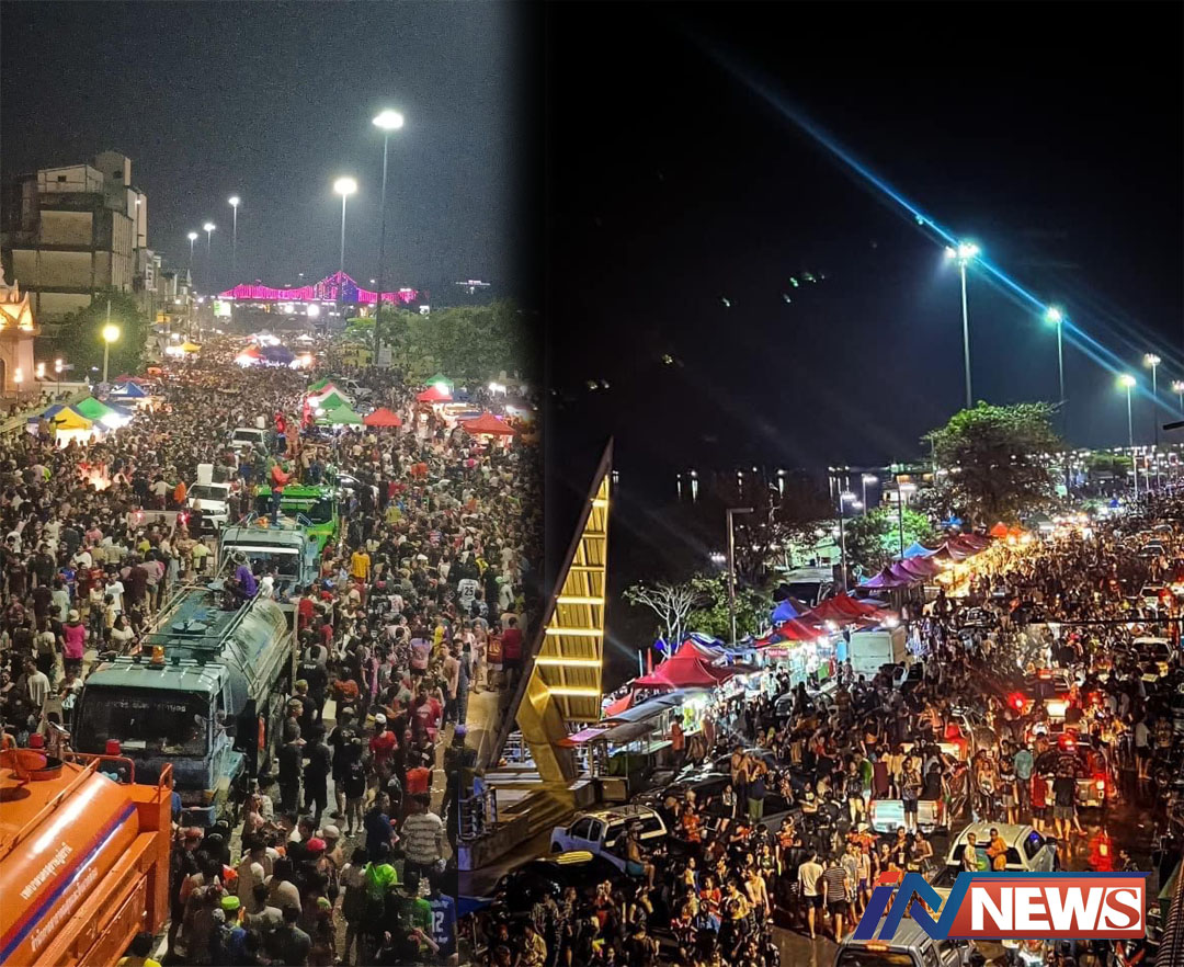 สุราษฏร์ธานี-ชาวสุราษฎร์เรือนหมื่นยาวกว่า 1 กิโลเล่นน้ำถึงเที่ยงคืน ชื่นชมวัยรุ่นโซเชี่ยลสร้างปรากฎการณ์ “ วันไหลบ...