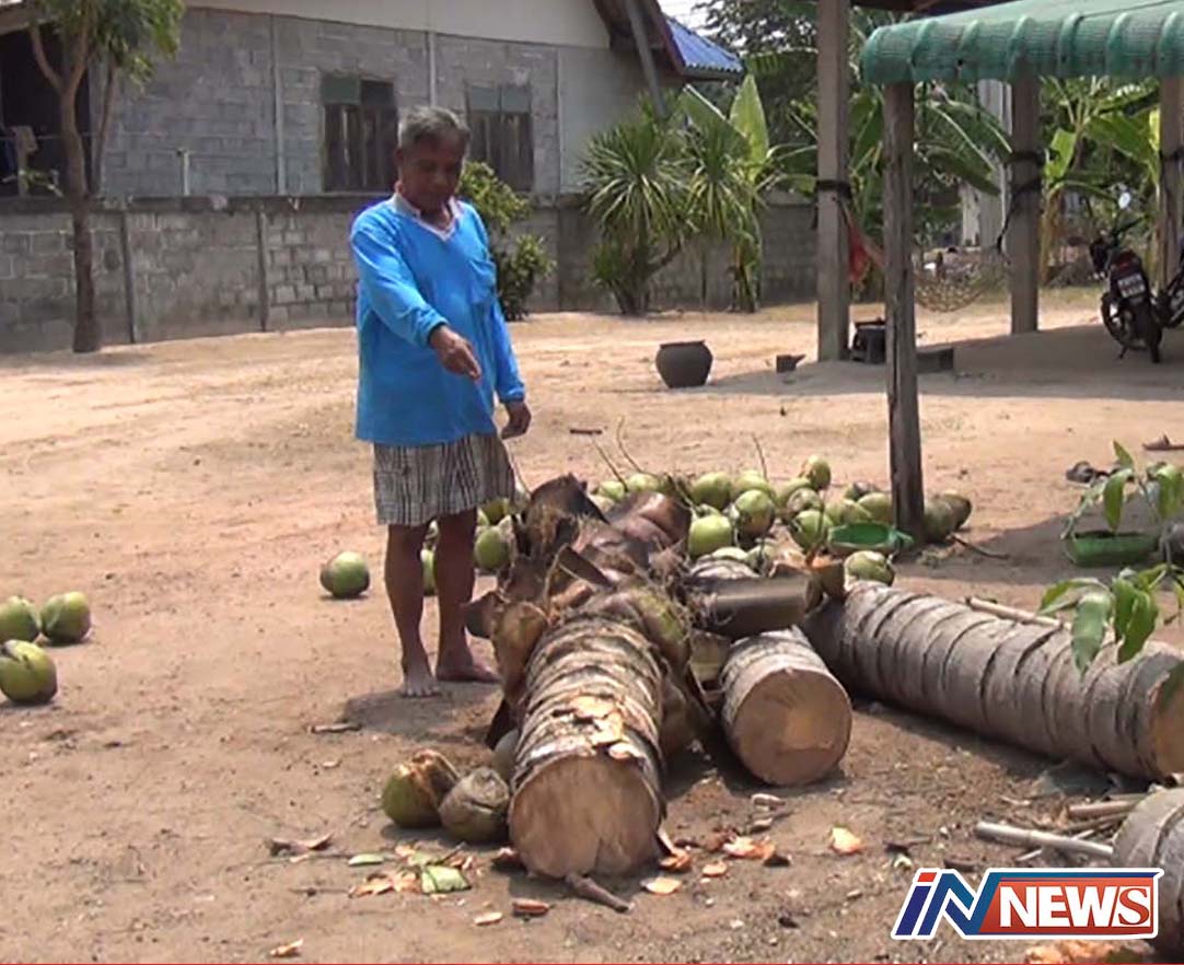 เชื่อเป็นลางร้าย!เกิดเหตุฟ้าผ่าต้นมะพร้าว เจ้าของบ้านเตรียมนิมนต์พระทำบุญบ้าน