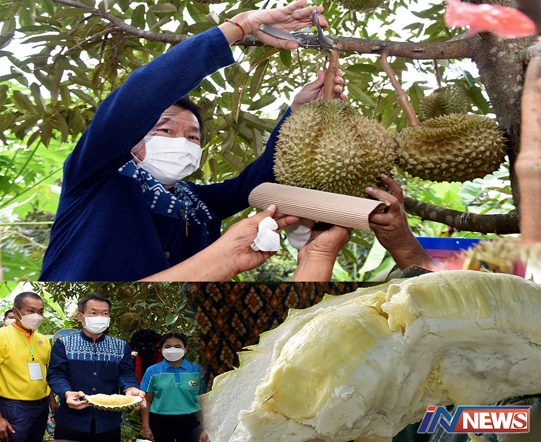 ผู้ว่าฯอ่างทองยึดศรีสะเกษลุยสวนทุเรียน ที่ศรีรัตนะชิมทุเรียนภูเขาไฟอร่อยที่สุด