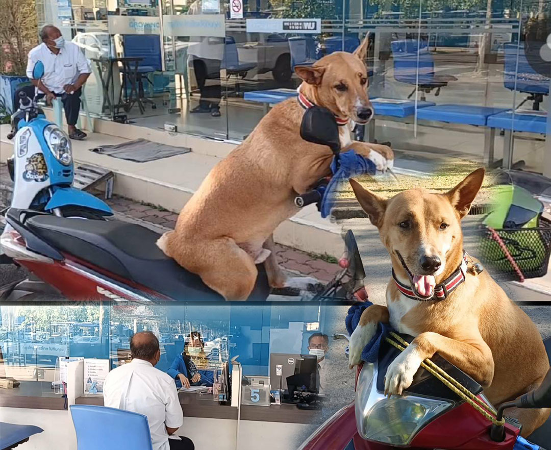 หนุ่มใหญ่เข้าเบิกเงินไม่ต้องกลัวรถหาย มีสุนัขแสนรู้เฝ้าจยย.ให้ไม่ห่าง