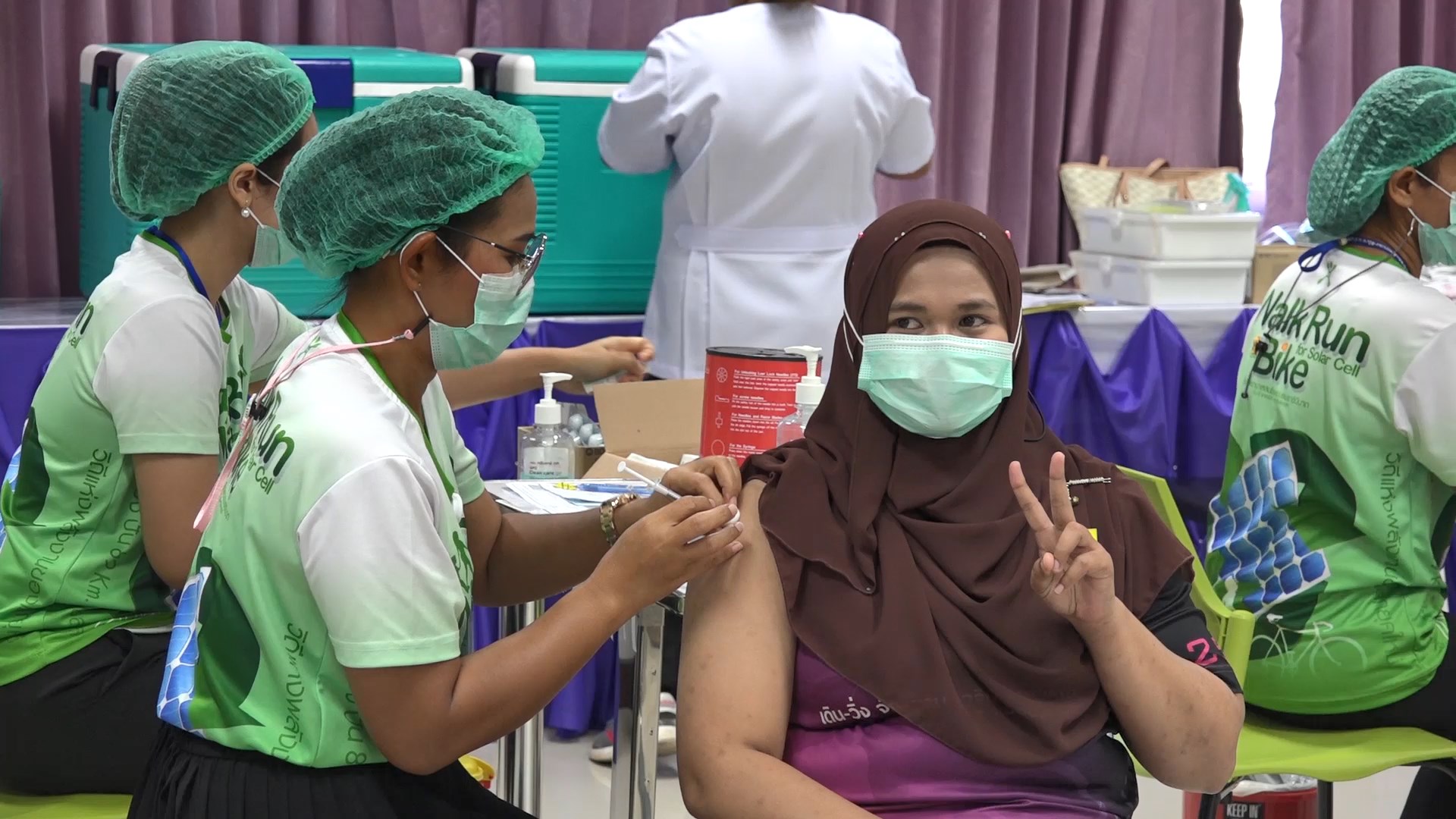 สงขลา-ชาวอำเภอนาทวีแห่ฉีดวัคซีนที่ รพ.สมเด็จพระบรมราชินี ณ อำเภอนาทวี หลังเกจิดังภาคใต้ และ ผอ.รพ.ฯเชิญชวน ส่วน เจ้าคณะอ...