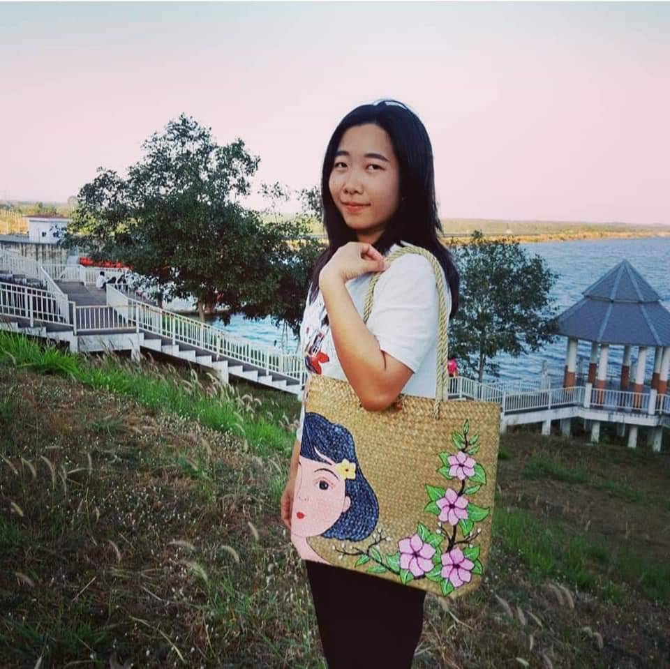 สมุทรปราการ-กระเป๋าสานจากภาคใต้ถูกเพ้นท์ลายโดยศิลปินสาวจากภาคเหนือ ทำเป็นกระเป๋าลดโลกร้อนได้อย่างลงตัวสวนกระแสเศรษฐกิจสู...