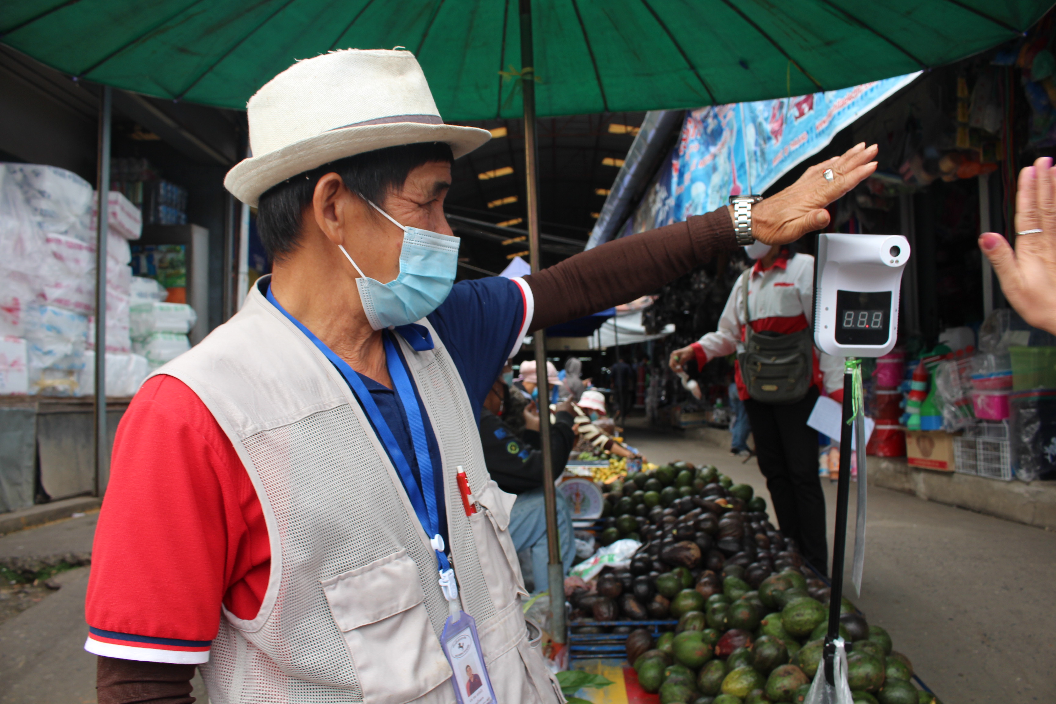 เชียงราย-พ่อค้าแม่ค้าตลาดสดนายบุญยืน เทศบาลตำบลแม่สาย จ.เชียงราย เข้มงวดตรวจวัดอุณหภูมิผู้เข้ามาใช้ตลาดด้วยเครื่องวัดดิจ...