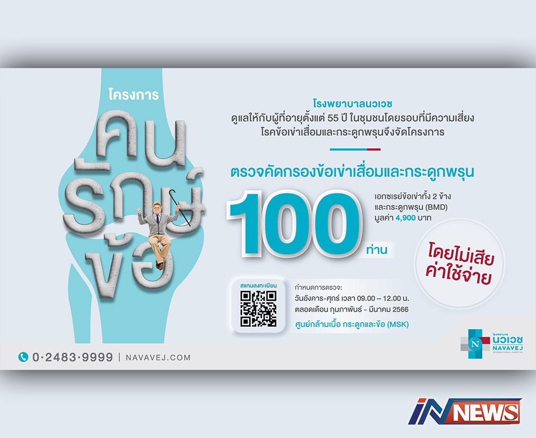 รพ.นวเวชห่วงสุขภาพคนชุมชนชงโปรเจ็ค 'คนรักษ์ข้อ'ตรวจข้อเข่าเสื่อม100คนฟรี