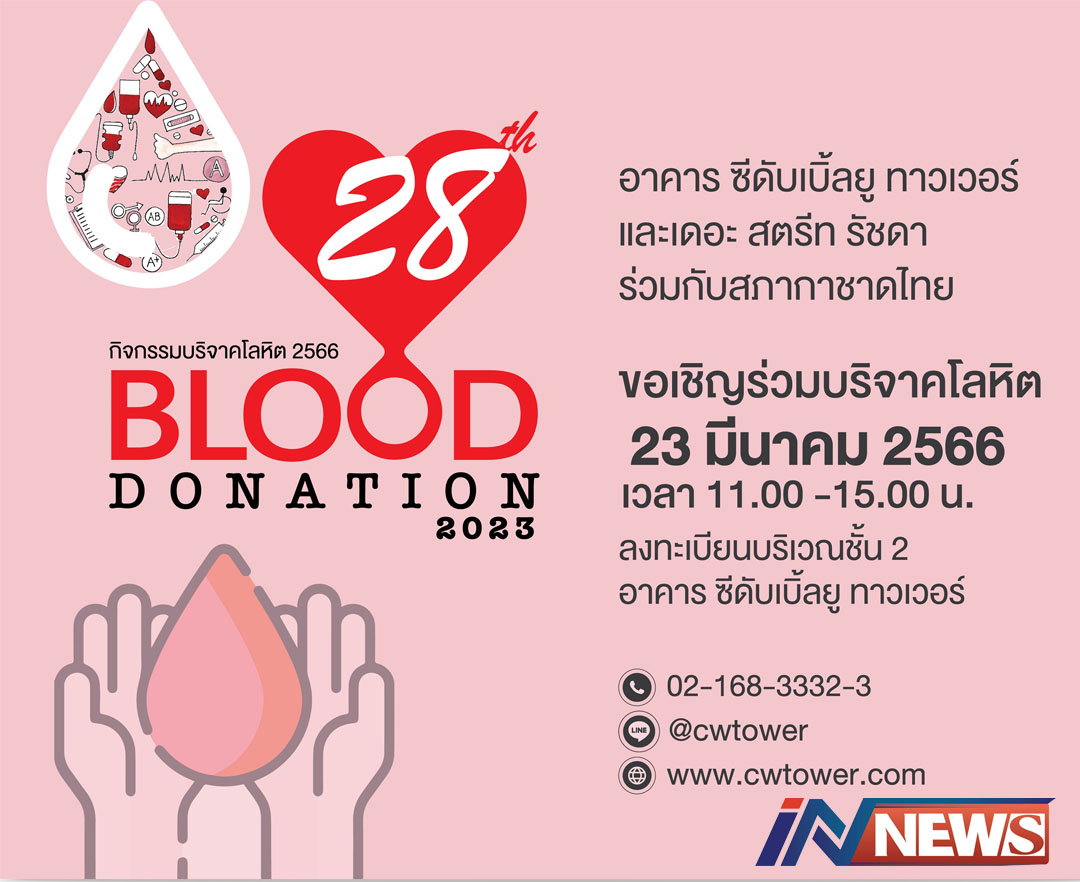 ซีดับเบิ้ลยูทาวเวอร์จับมือเดอะสตรีทรัชดา ชวนคนไทยร่วมบริจาคโลหิต