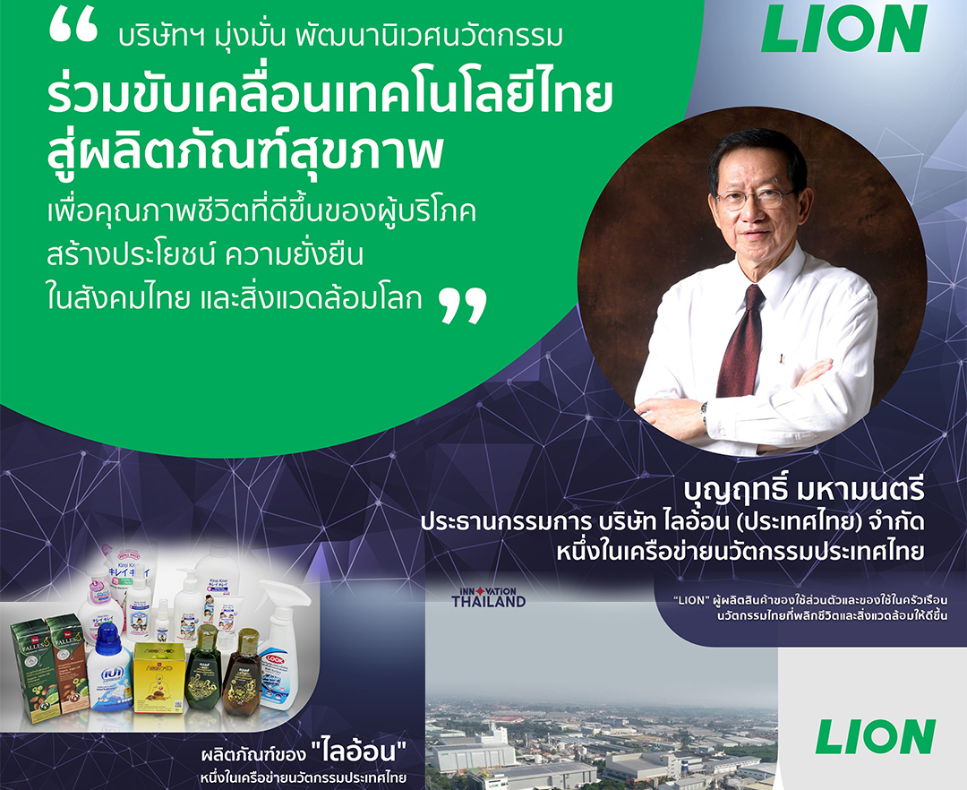 'ไลอ้อน'ร่วมกับ'เครือข่ายนวัตกรรมไทย' ชูนวัตกรรมขับเคลื่อนธุรกิจพลิกฟื้นปท.