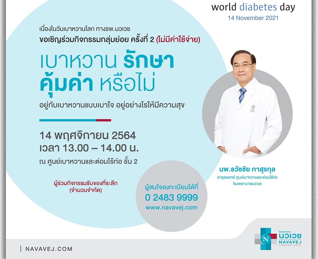 'รพ.นวเวช'ชวนผู้ป่วยเบาหวานผู้สนใจ คุยแพทย์'บาหวานรักษาคุ้มค่าหรือไม่'
