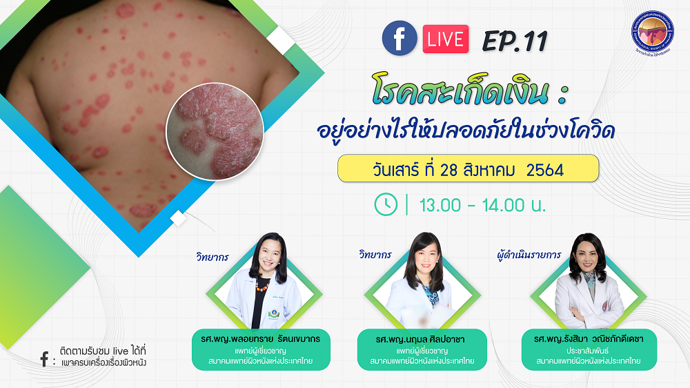 สมาคมแพทย์ผิวหนังฯ เชิญรับชมเพจเฟซบุ๊ก “ครบเครื่องเรื่องผิวหนัง”EP.11 ตอน โรคสะเก็ดเงิน: “อยู่อย่...