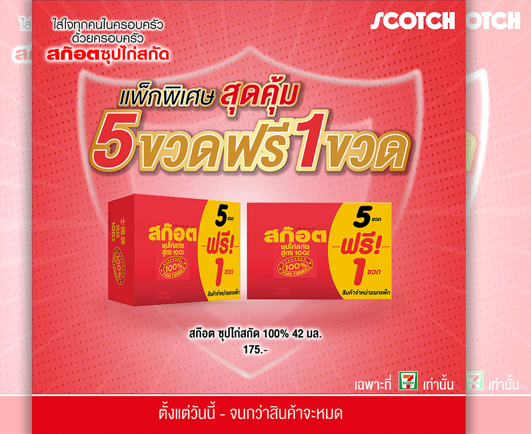 สก๊อต100 ซุปไก่สกัดจัดโปรโมชั่นสุดคุ้ม ซื้อ5ขวดรับฟรี1ขวด