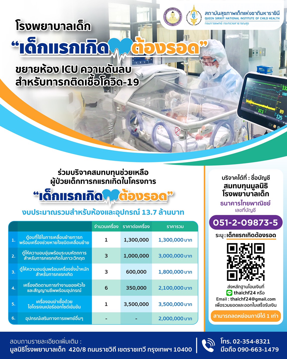 “เด็กแรกเกิดต้องรอด” โครงการจัดซื้ออุปกรณ์สำหรับทารกแรกเกิดที่แม่ติดเชื้อโควิด-19 จาก “โรงพยาบาลเด็ก&r...