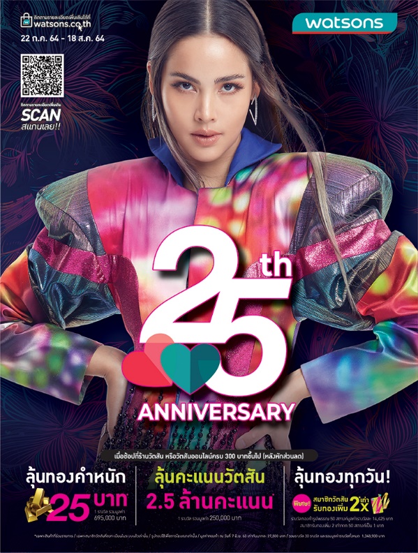 กรุงเทพฯ-ครบรอบ 25 ปี วัตสันส่งรอยยิ้มแทนคำขอบคุณลูกค้าจัดหนักทองคำ พร้อมโปรฯ สุดคุ้ม ได้ลด ได้ลุ้น จุใจตลอดทั...