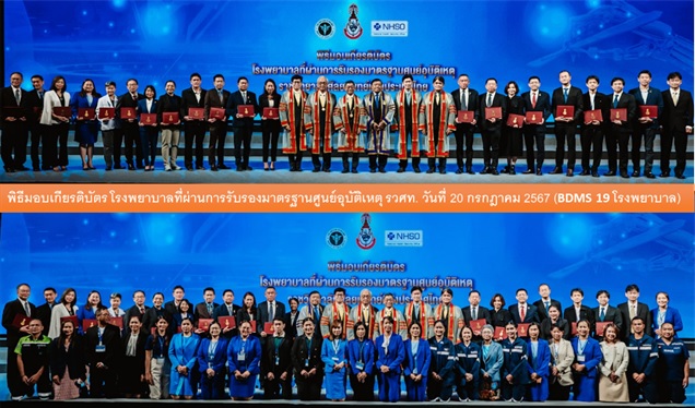 รพ.ในเครือBDMS19แห่เข้ารับเกียรติบัตร รับรองมาตรฐานศูนย์อุบัติเหตุฯ