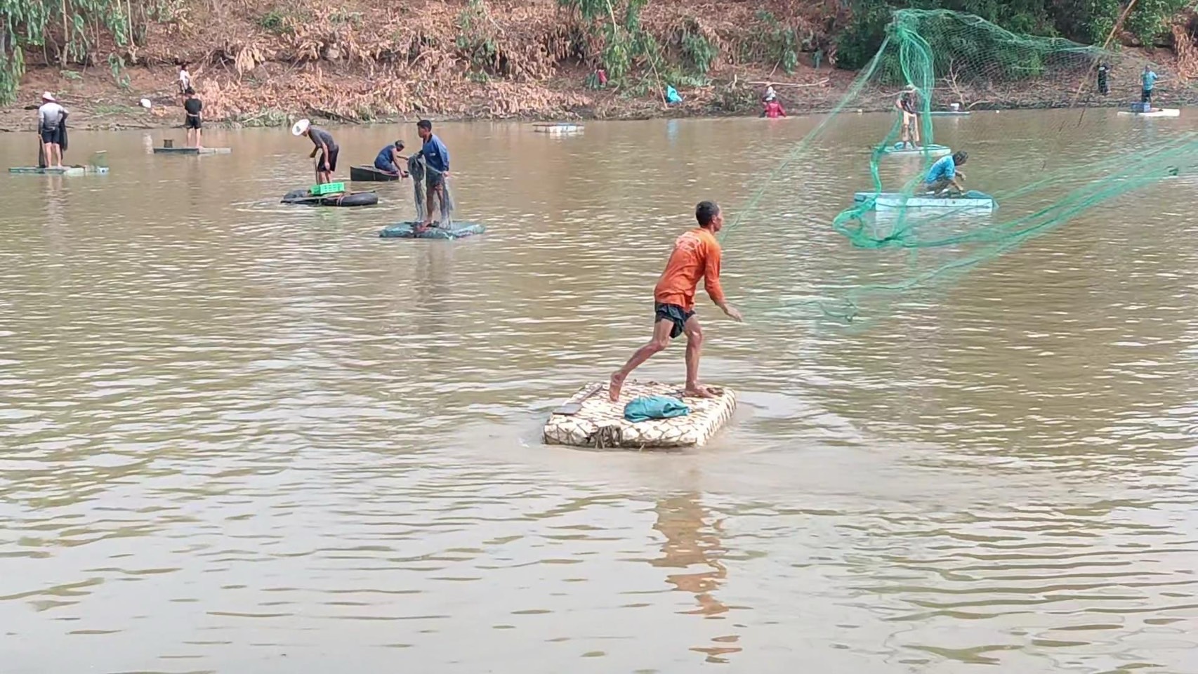 สีสัน!ร่วมเซียนแหแก้อากาศร้อน'ซับเปิบ' แข่งจับปลาในบึงจัดเปิดขายสดๆขอบบ่อ