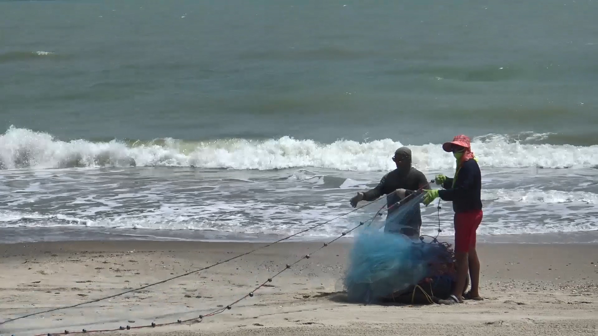 สงขลา-สองหนุ่มเพื่อนซี้ใช้เวลาว่างสร้างรายได้ นำอวนมาลากจับปลากระบอกบริเวณชายหาดชลาทัศน์ แหลมสมิหลา ส่งขายให้กับร้านอาหา...
