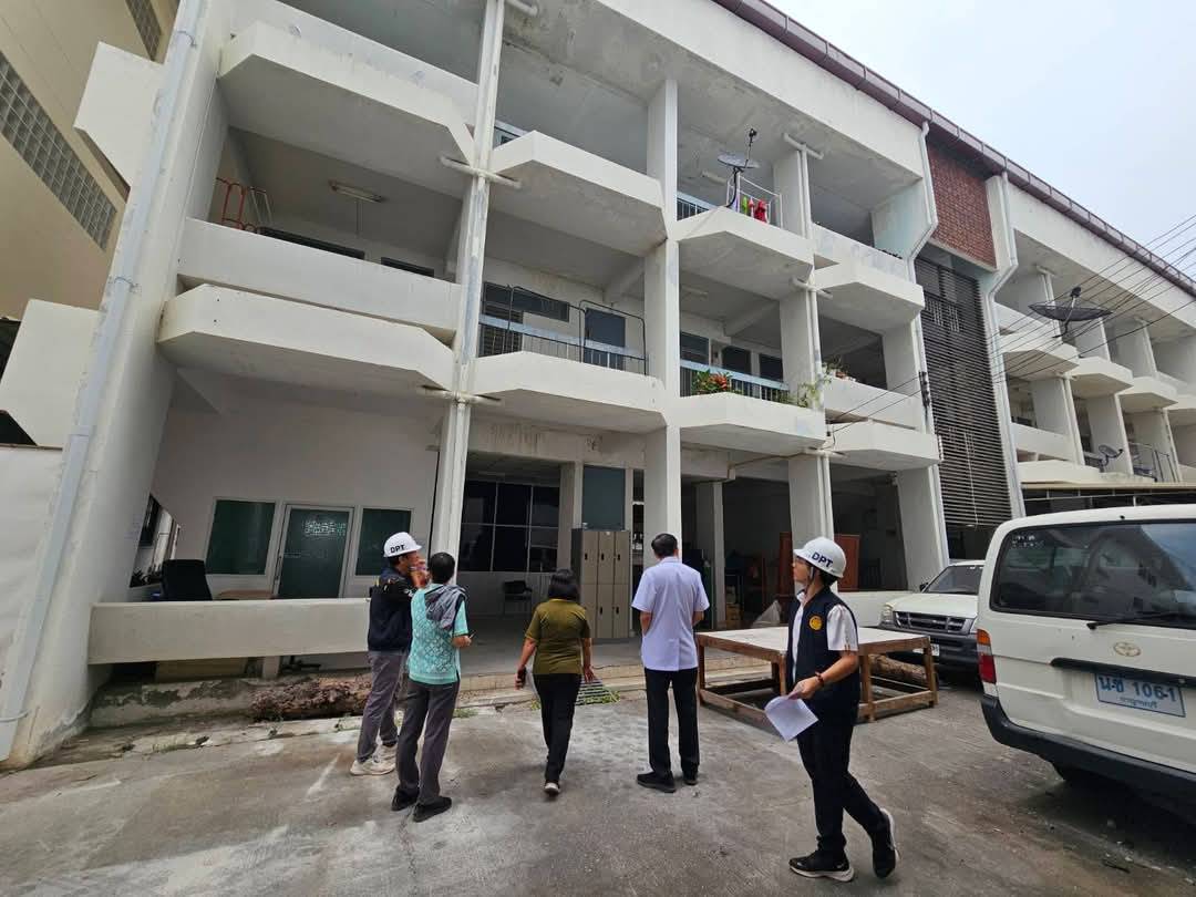 กาญจนบุรี-รอง นพ.สสจ.กาญจนบุรี ร่วมกับ สำนักงานโยธาธิการและผังเมืองจังหวัดกาญจนบุรี สำรวจตรวจสอบความเสียหายอาคารสำนักงาน...