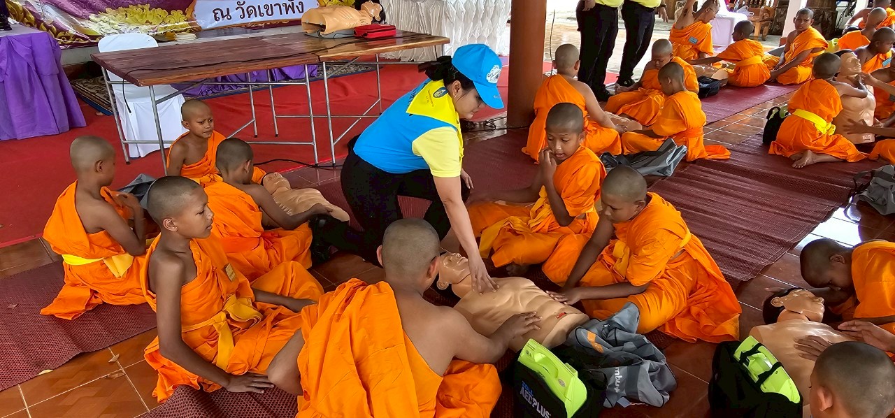 สุราษฎร์ธานี-วัดเขาพัง ร่วมกับ จิตอาสาพระราชทาน 904 สุราษฎร์ธานี ถวายความรู้การช่วยชีวิตขั้นพื้นฐานการทำ cpr บรรพชาสามเณ...
