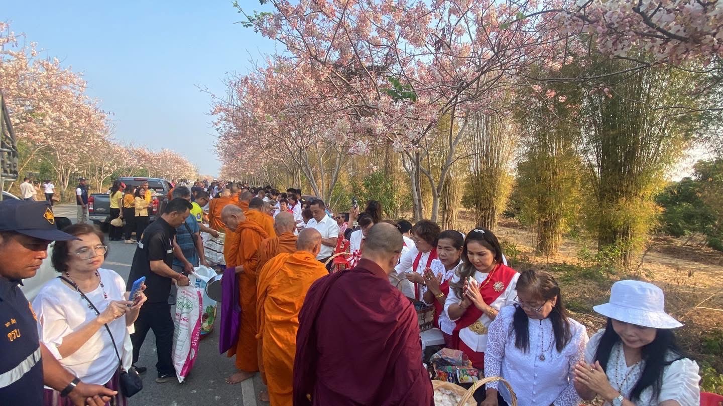 ปชช.ชาวไทย-เขมรร่วมทำบุญตักบาตร แด่พระสงฆ์100รูปบนถนนซากุระ
