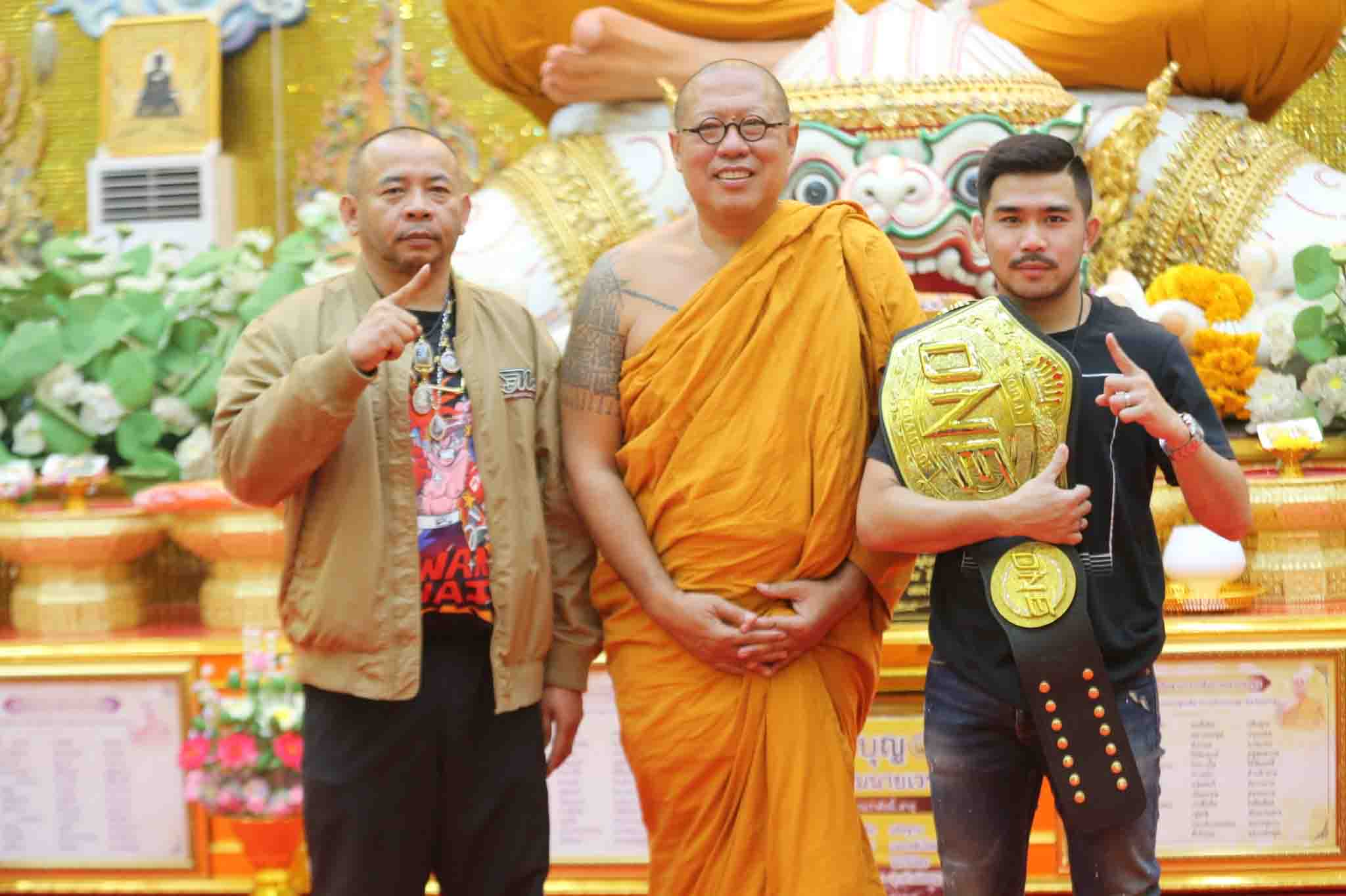 'พระจันทร์ฉาย'แชมป์โลกแบกเข็มขัด กราบหลวงพี่น้ำฝนรับตระกรุดทองคำ