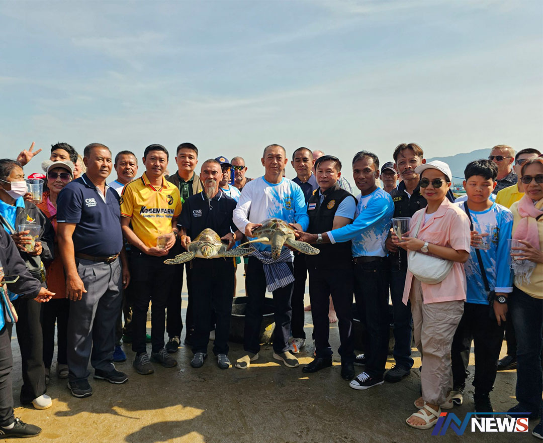 'เฉลิมชัย'ปล่อยเต่าตนุสร้างบ้านปลาฟื้นฟู ทะเลสามร้อยยอดชื่นชมชุมชนเข้มแข็ง