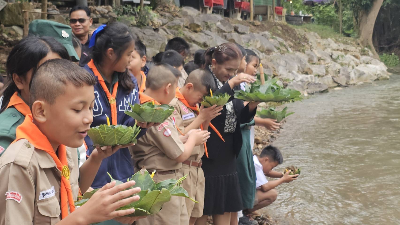 ชาวเขาใหญ่ชวนเด็กนร.ทำกระทงใบไม้ ใช้วัสดุเป็นมิตรต่อสิ่งแวดล้อม