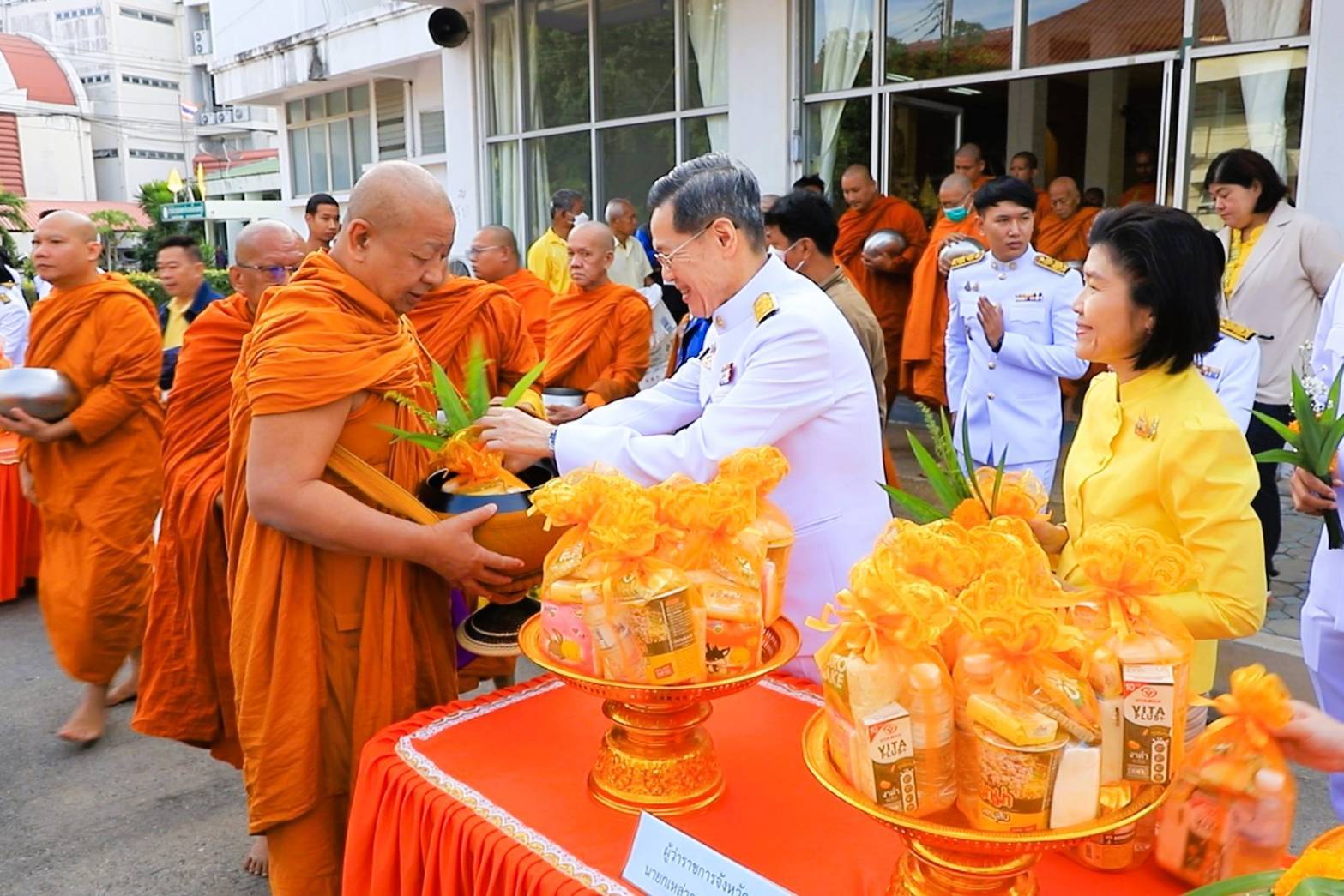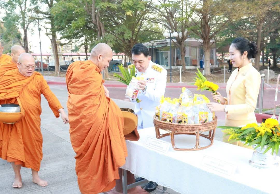 ผู้ว่าฯกาญจนบุรีทำบุญตักบาตรเนื่องใน พระราชพิธีสมมงคลพระชนมายุเท่าร.1