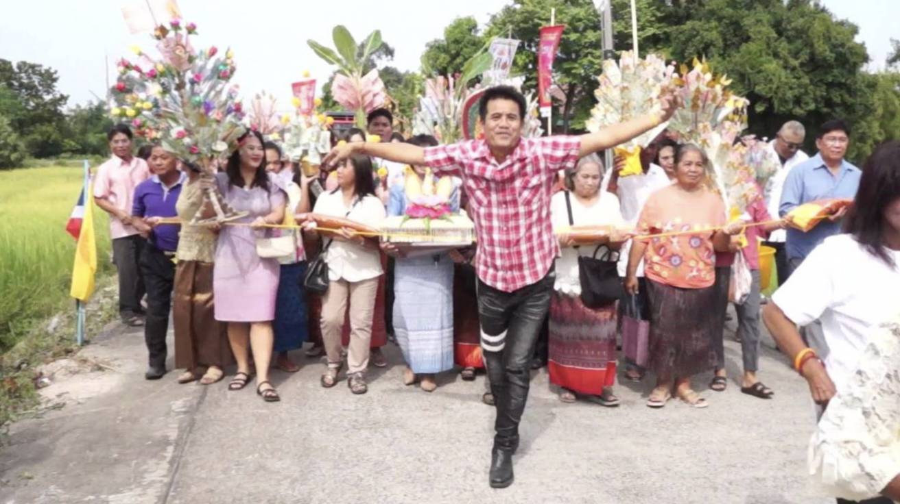 ศรีสะเกษ-พุทธศาสนิกชนแห่ร่วมบุญทอดกฐินสามัคคีมหากุศล สมทบสร้างหอระฆังวัดศรีสมบูรณ์รัตนาราม คึกคัก