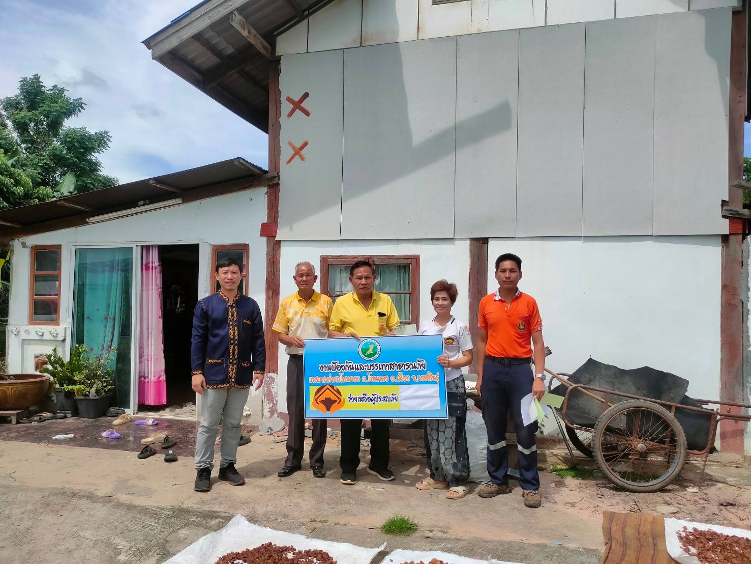นายกทต.โพนทองพร้อมด้วยสำนักปลัด มอบเงินช่วยเหลือ6ครัวเรือนที่ไฟไหม้